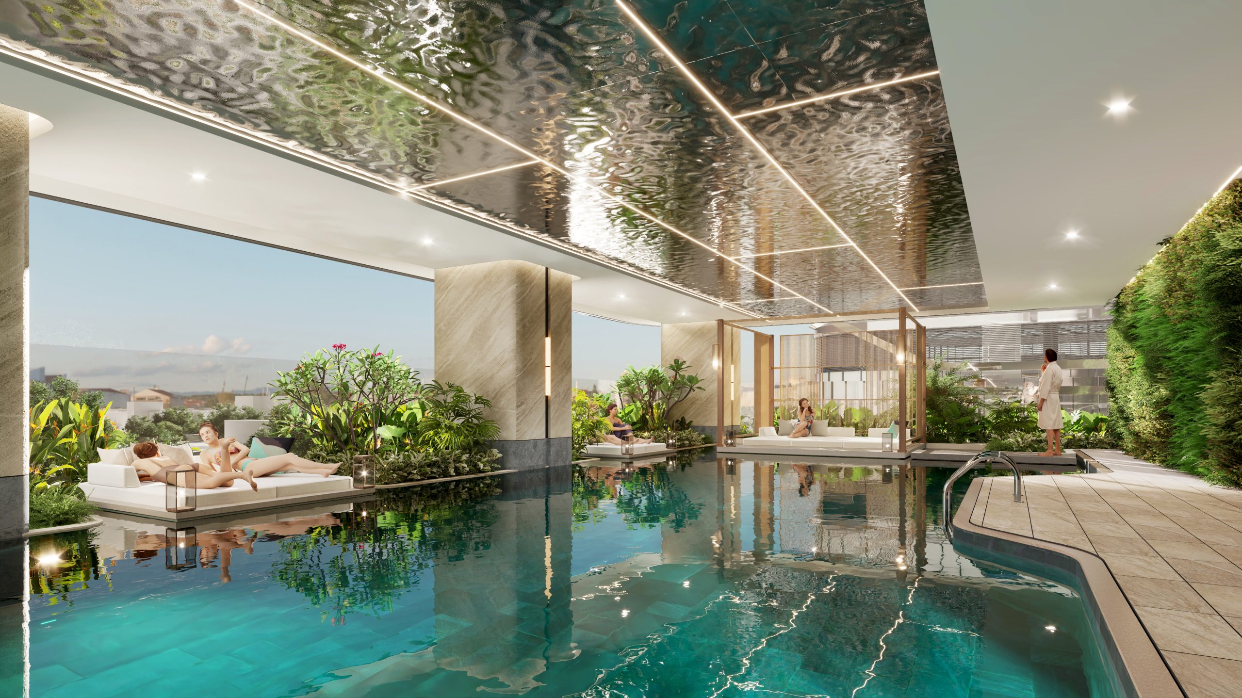 Tiện ích: Hồ bơi vô cực, sky bar rooftop, trung tâm thương mại, gym – spa – yoga, công viên xanh, khu vui chơi trẻ em…